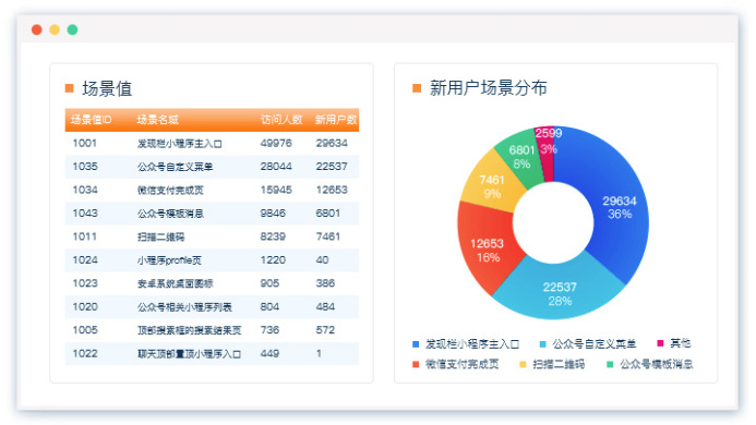 实时分析渠道情况:每个场景值都是一个入口,了解小程序最大流量入口分类