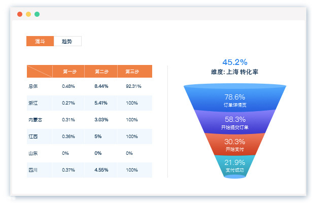 事件与转化漏斗,360°展现关键路径中每一步转化