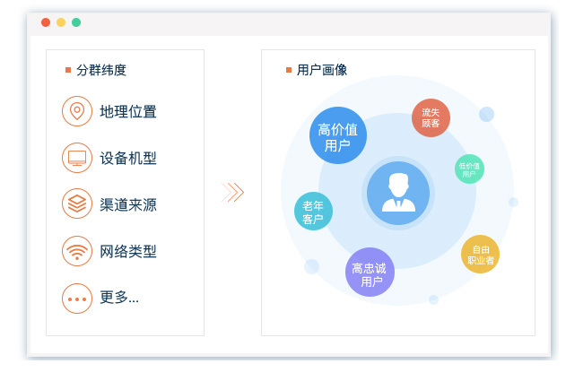划分用户群,分析不同人群属性、行为特点及关键路径转化的差异
